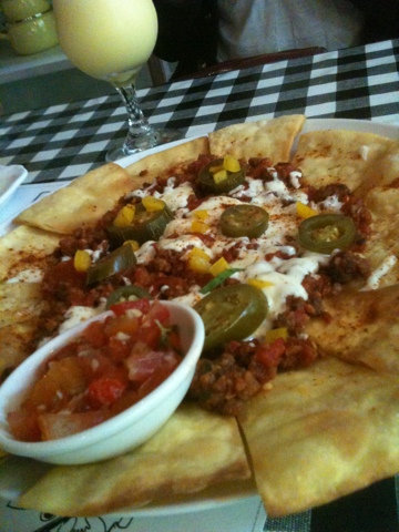 Nachos pizzanya diluar dugaan, ukurannya gedeeee, cukup buat 4orang. Nachos tebal dan crispy, ga sprt pangsit kok heehe, toppingnya daging sapi cincang, tomat, saus tomat, and mozarella cheese, enak 🙂