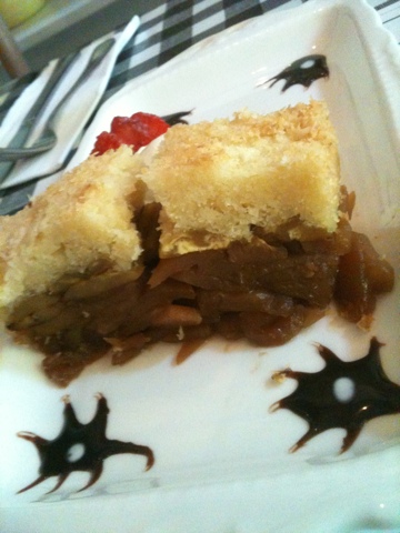 Apple crumblenya 2pcs disajikan hangat dg es krim vanilla and saus coklat, dibawah crumblenya ada apple, and banana, yummy 🙂
