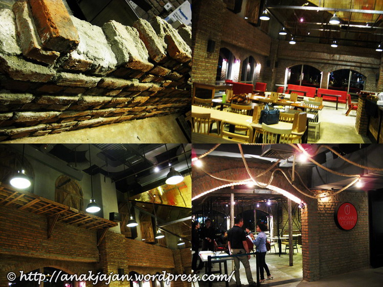 Interior dibagian coffee lounge menggunakan tema ala gudang vintage dengan tembok-tembok bata (ps: kalo dipakein pengharum ruangan aroma gudang bakalan makin okeh 😉 ) ,sayang sekali untuk area coffee loungenya tidak ada pemisahan smoking/ non smoking. Ohya, setiap jumat malam jam 7-10 malam bakalan ada live acoustic disana.