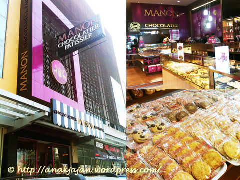 Di gading AnakJajan mampir ke Manon Chocolatier & Patissier, letaknya diruko dekat dengan Sport Mall.Interiornya didominasi dengan warna ungu dan hitam. Produknya cukup banyak variasinya, ada cookies, macaron, cake ato tart, chocolate, praline, roti, croissant.