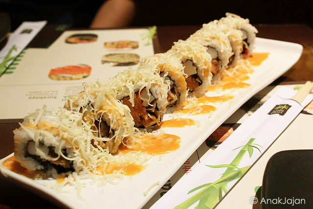 AnakJajan sempat mengira menu ini akan eneg melihat serutan keju diatasnya, akan tetapi ternyata setelah dimakan tidak eneg sama sekali. Bagi Sahabat Jajan yang baru mulai nyobain makan sushi, bisa coba pesan menu yang satu ini.