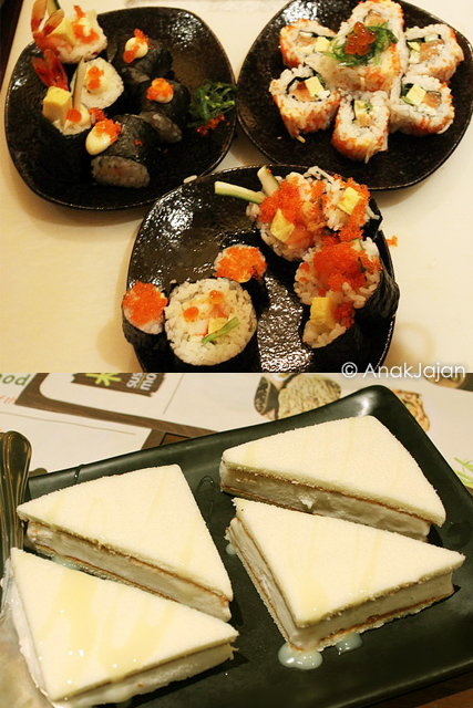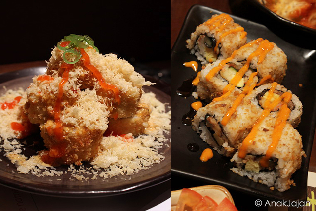 Fushion sushi yang satu ini banyak disajikan di restoran sushi, akan tetapi banyak yang rasanya eneg. AnakJajan suka dengan volcano roll yang di Sushi Mori, menurut AnakJajan perpaduan ingredientnya sangat pas walaupun sushi ini digoreng kemudian diberi kremesan diatasnya tapi ketika dimakan tidak menyisakan rasa eneg sama sekali.