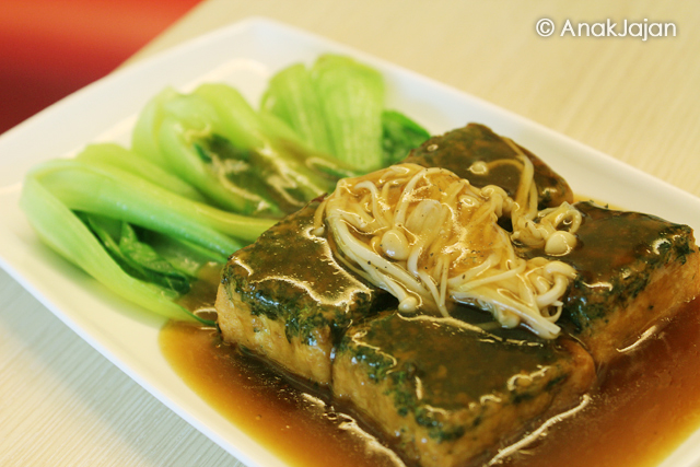 Terdiri dari sayur pokchoi dan 4potong tahu telur disiram dengan tumisan jamur enoki bumbu saus tiram. Rasanya cukup comfort, sausnya yang sederhana cocok dipadukan dengan tahu telurnya.