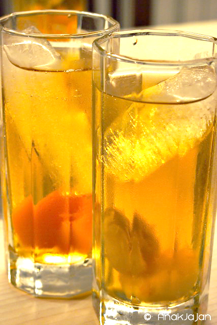 Minuman ini salah satu menu minuman baru, yakni es teh dengan potongan buah lychee ataupun peach, cukup segar dan meredakan tenggorokan setelah kepanasan melahap mie udangnya.