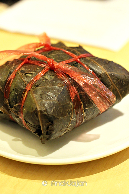 Bakcang di Paradise Dynasty bisa dibilang ukuran bakcang terbesar yang pernah AnakJajan makan (sekitar 14cm) dibungkus daun bambu dan daun teratai agar menghasilkan aroma wangi khas. Isi bakcang terdiri dari nasi ketan, jamur hioko, pork belly alias samcan, pork meat, lapchiong atau pork sausahe, lotus seed, salted egg yolk, mungbean, dan ebi, generous filling and perfectly seasoned.