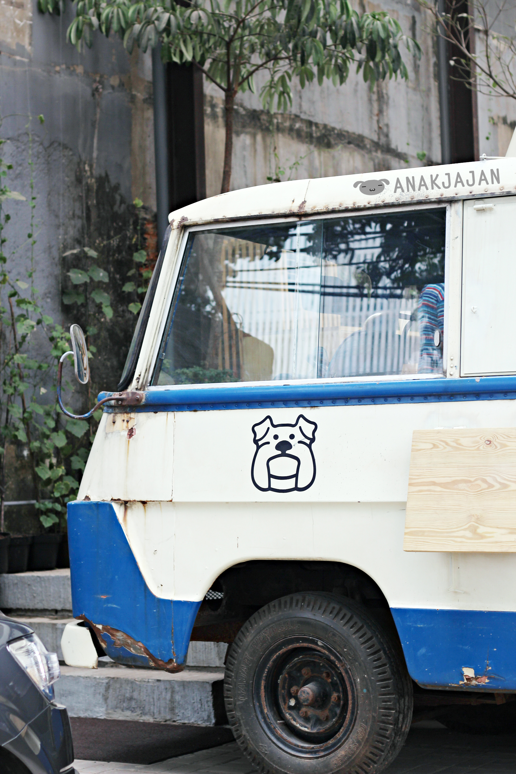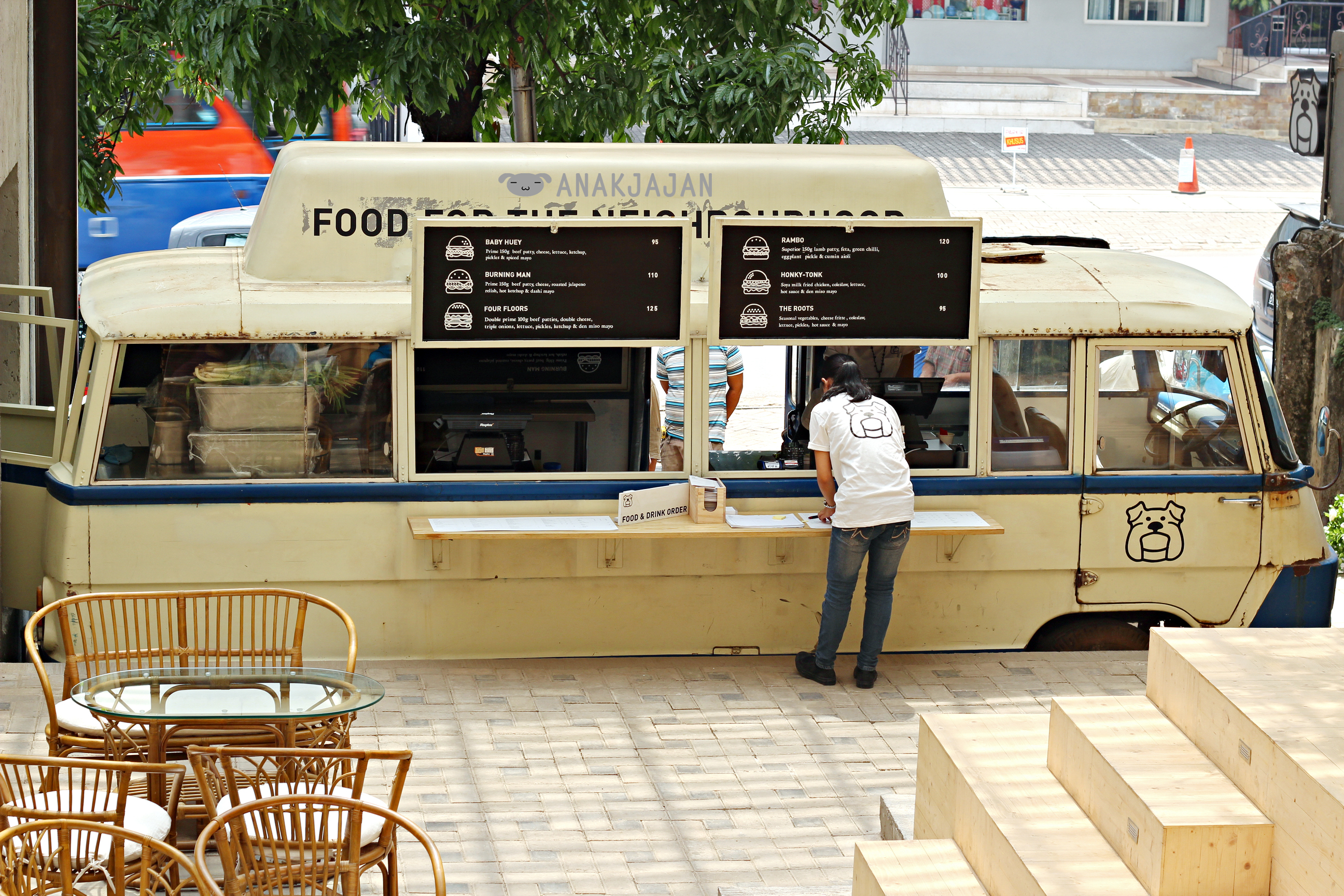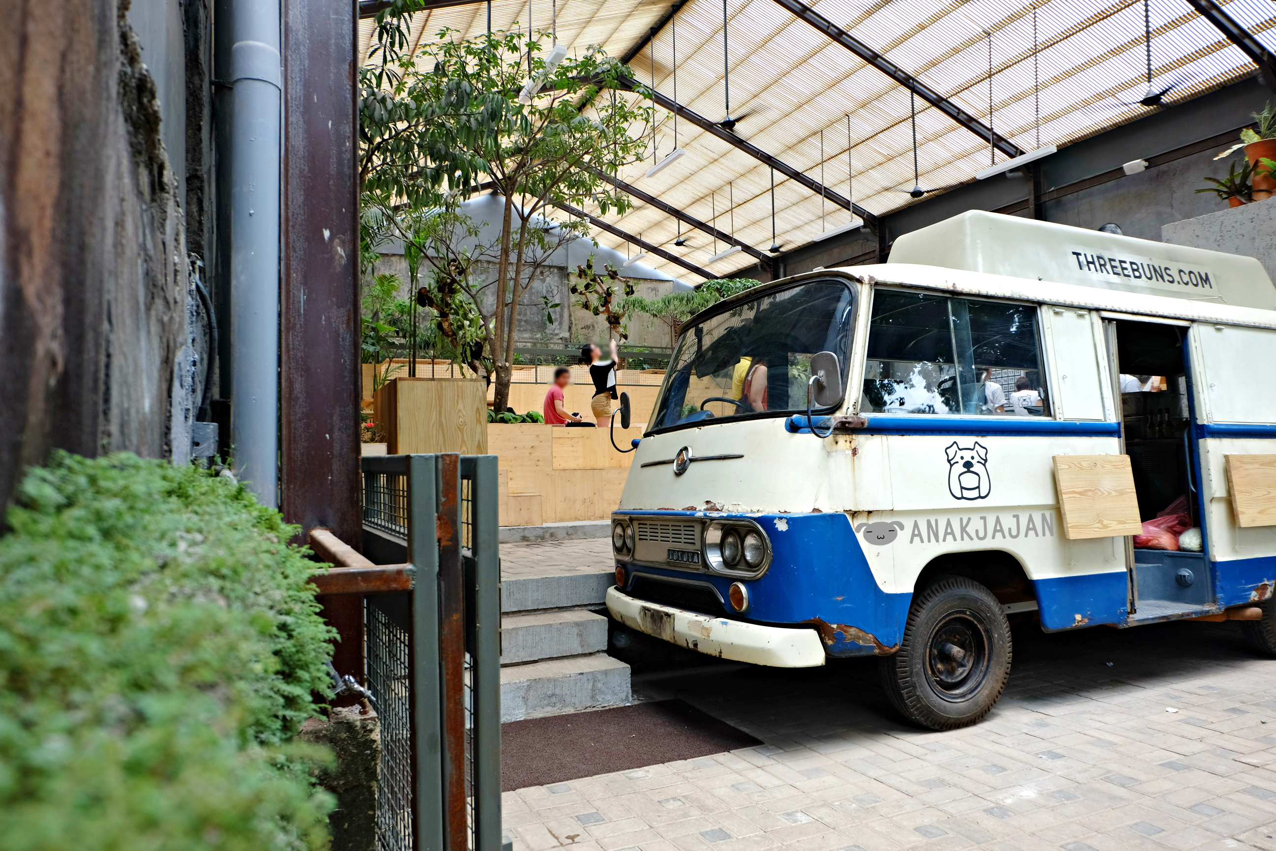 Three Buns Burger and Heads located near Izakaya Issei Senopati with a catchy old vintage blue + white van in front.