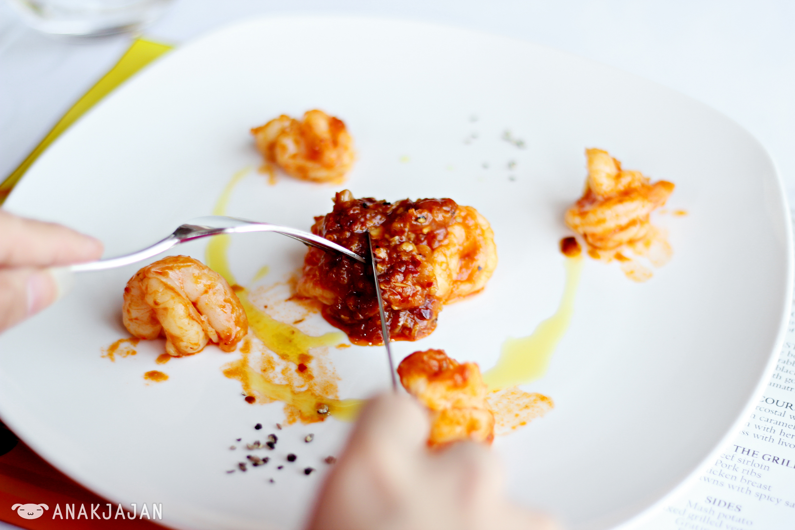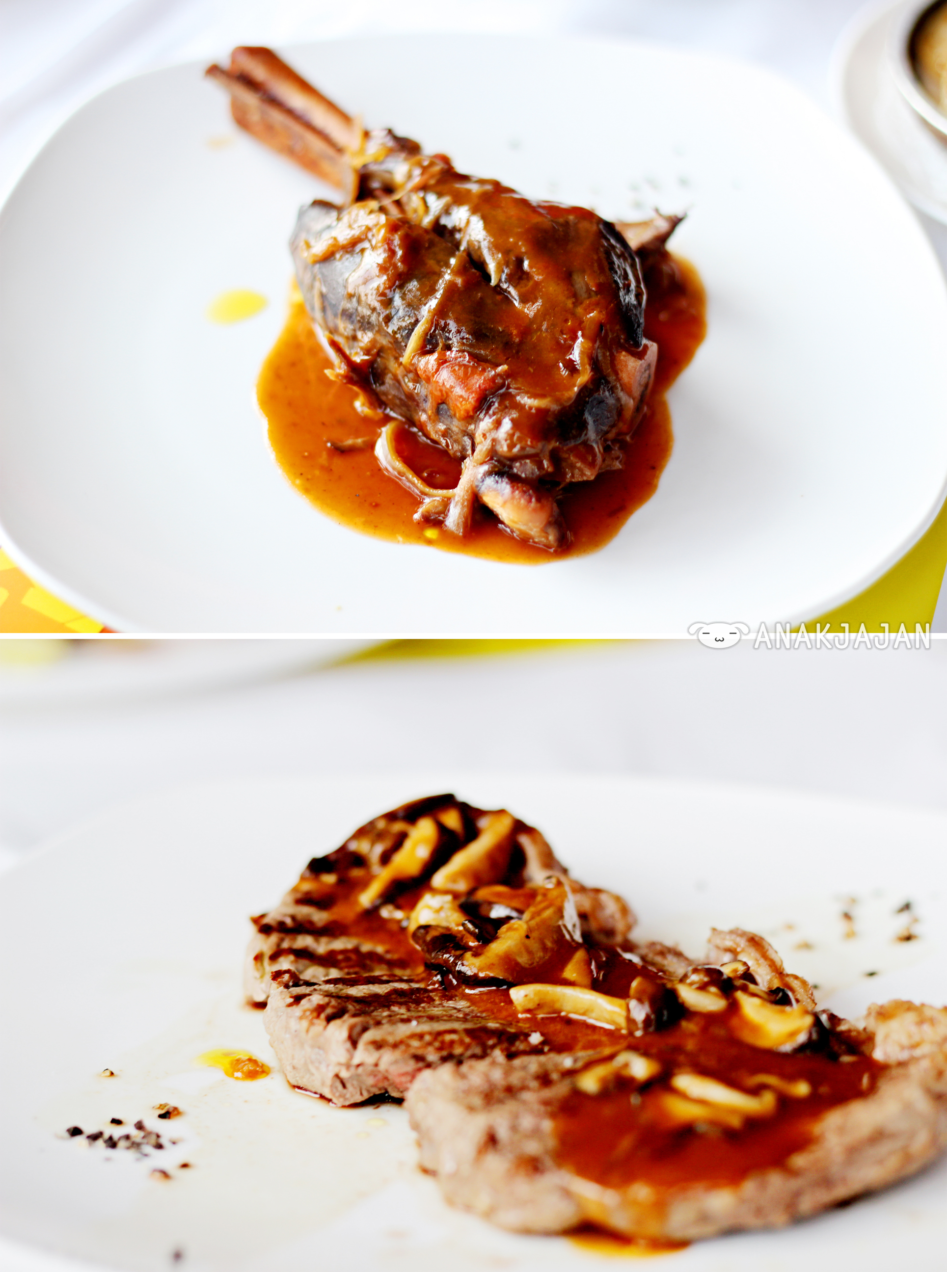 Together with foodie friends we ordered different dishes to share: Slow Cooked Wagyu Intercosal with Daily Vegetables, Pork Ribs, Braised Lamb Shank with Caramelized Onion Sauce, Beef Sirloin with Mushroom Sauce, Sautee Prawns with Spicy Sauce, Oven Baked Seabass with Livornese Sauce, Coffee Beef Ribs. All of those main courses were really good, perfectly seasoned and perfectly cooked and simply delicious.