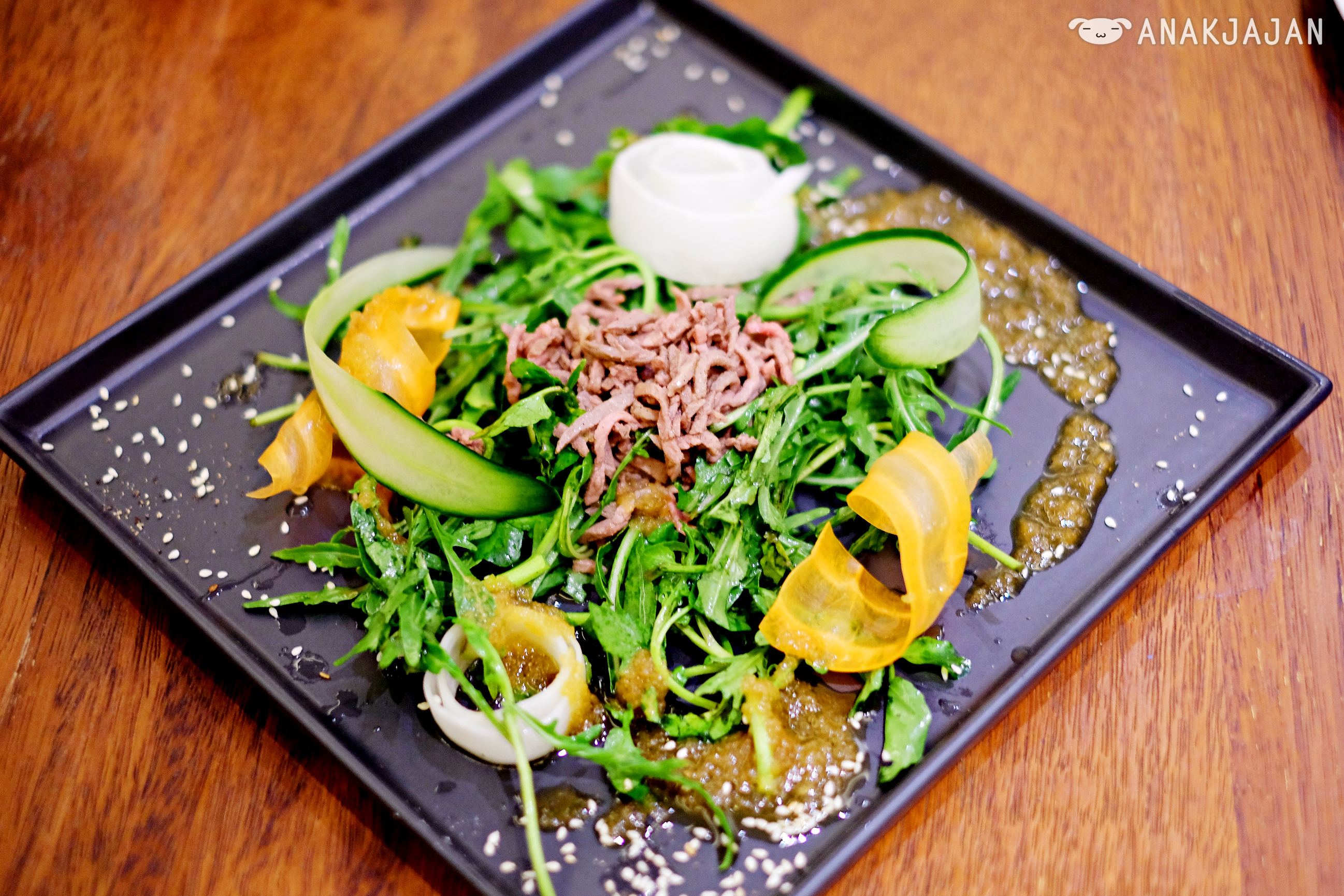 Tuna Salad with Japanese Radish Sauce IDR 65k, Black Angus Beef Tataki with Soy Truffle Sauce