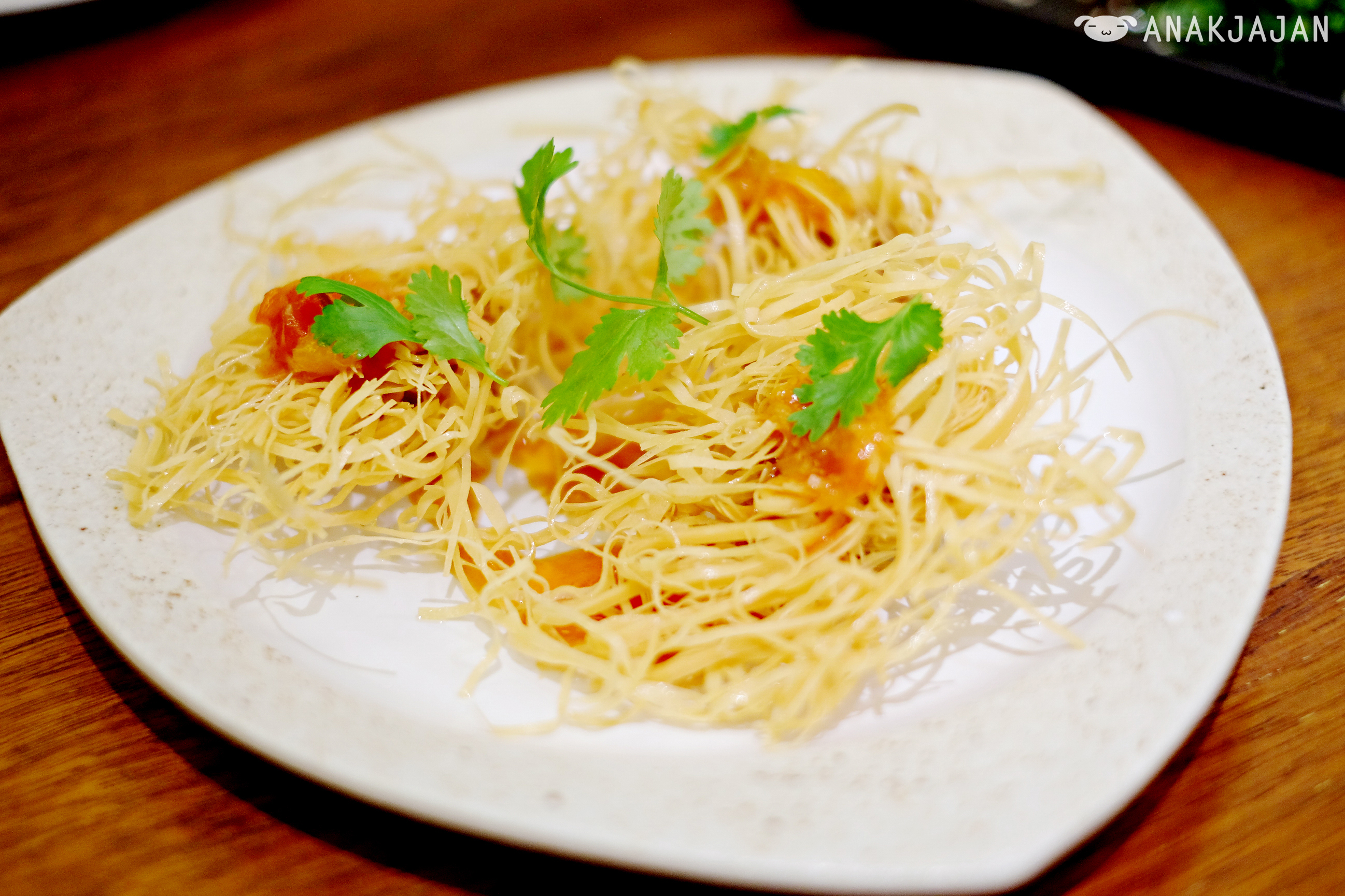 Juicy fish ball inside with shredded crunchy wonton skin outside. AnakJajan love the sauce they drizzled in it, sweet and sour homemade tomato sauce.