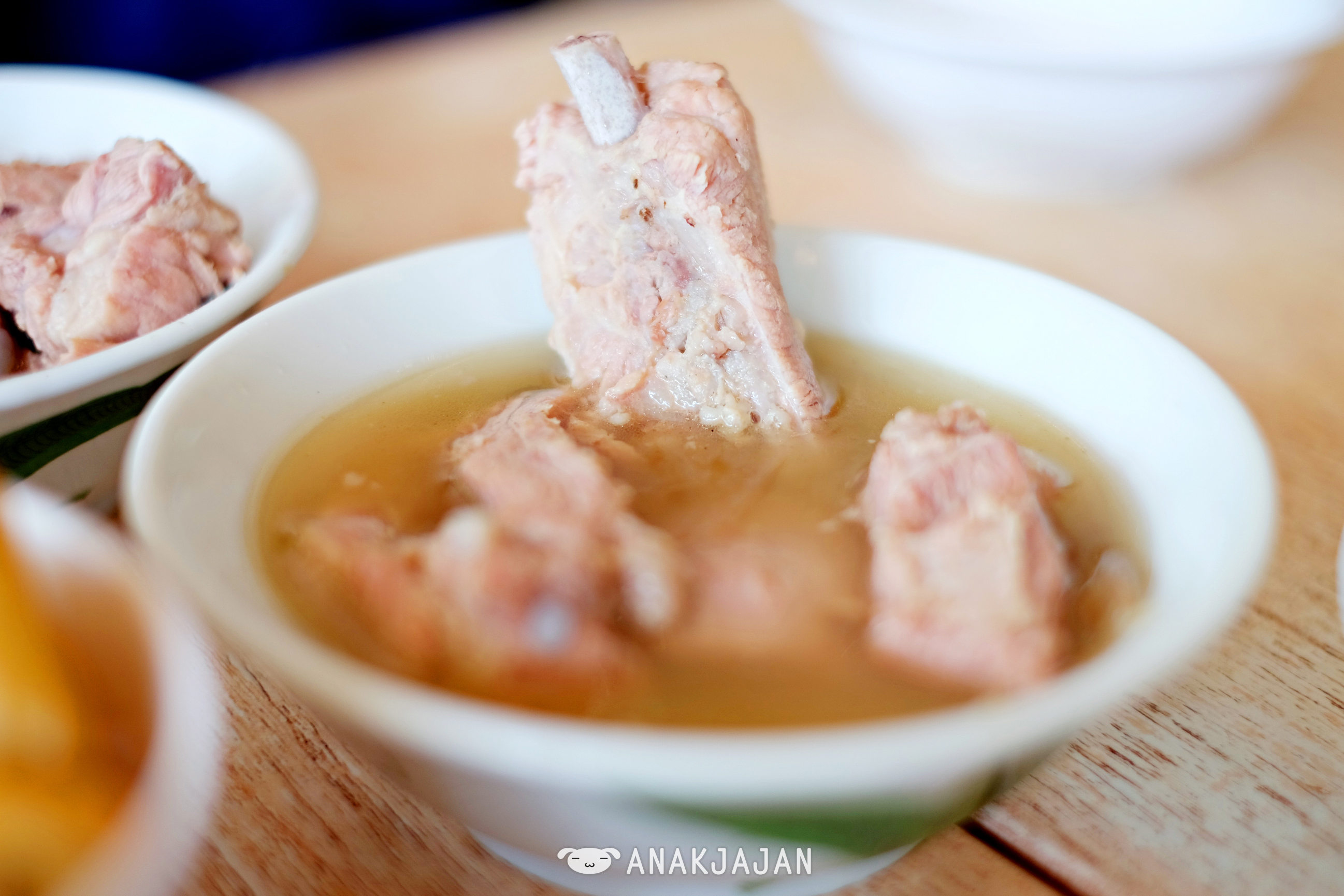 Regular portion comes with 2 pieces of ribs while Large portion IDR 88k comes with 3 pieces of ribs. The pork soup was really rich with a strong peppery taste, you can always ask for refill for the soup. On the other side, pork ribs was really tender, soft and fall off the bone easily I regret ordering regular size 🙂