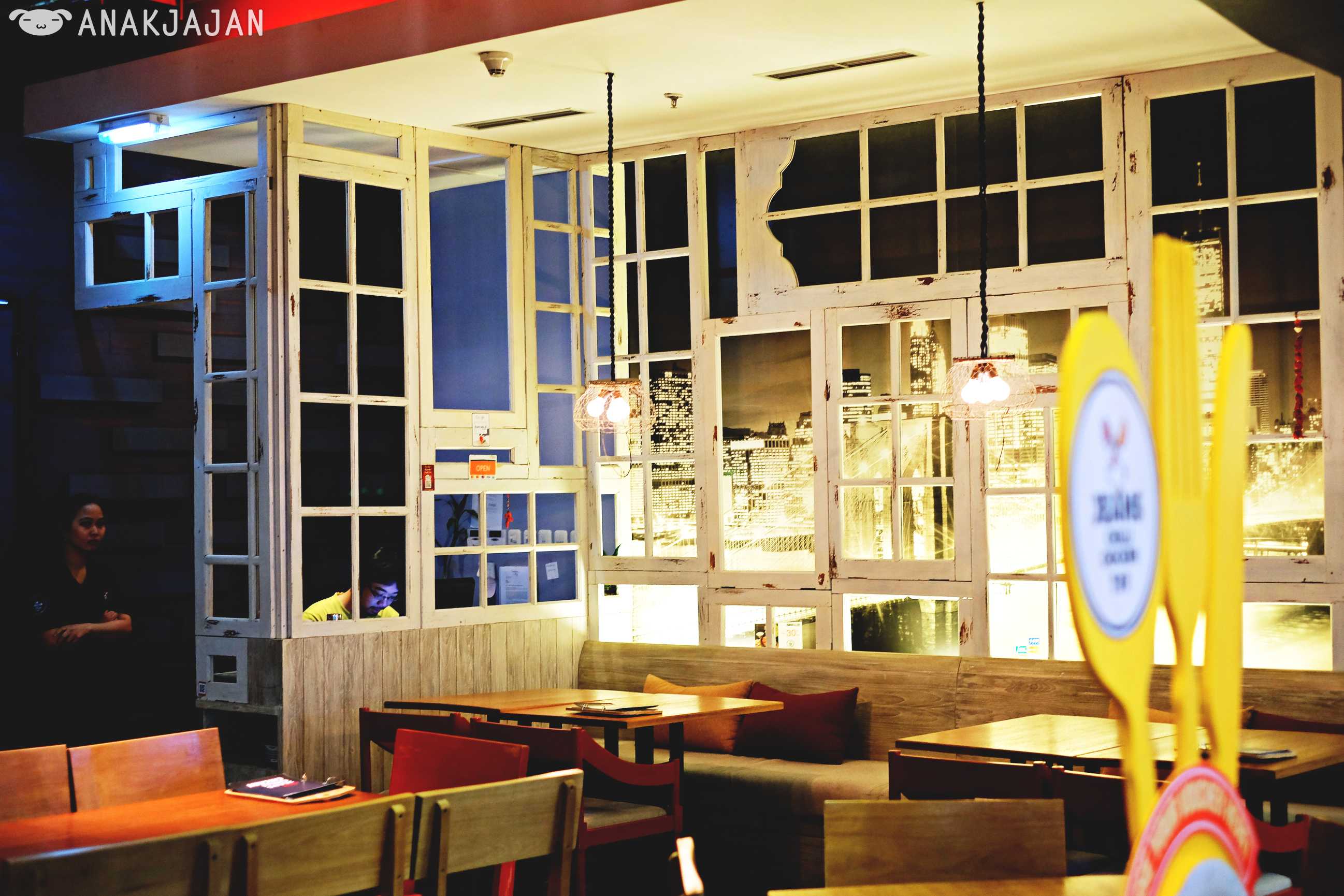 Located inside Gandaria City Mall at Mainstreet area UG floor, you can easily spot this restaurant with chicken spitting fire logo in it.