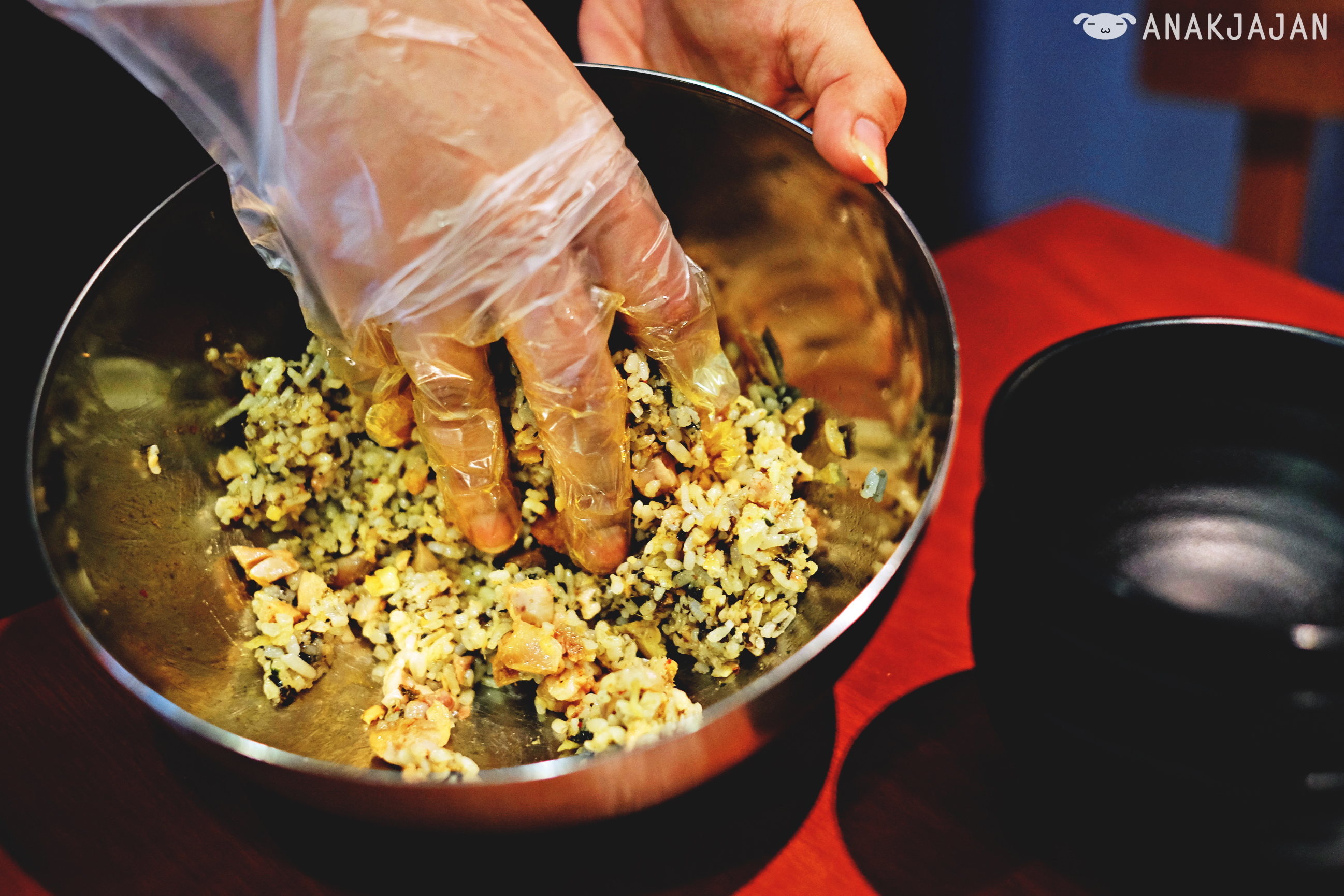 As a companion to the Chilli Chicken, you can order the Rice Ball IDR 20k, a bowl of rice mixed with toasted seaweed and sesame seed will be served with a pair of scissors and plastic gloves. All you need to do is add some pieces of Chilli Chicken and then cut it into smaller pieces with scissors, mix it well with the rice and mold it into balls. The spicy seasoning from chicken blends really well with the rice, yummeh!