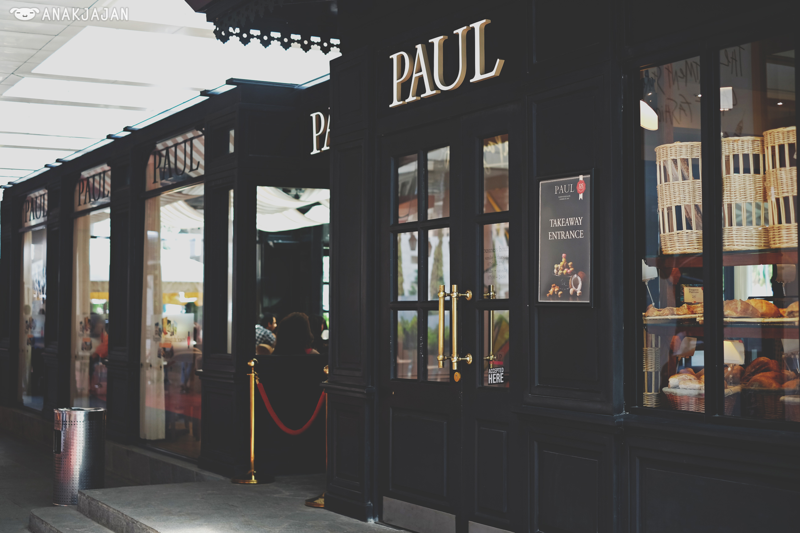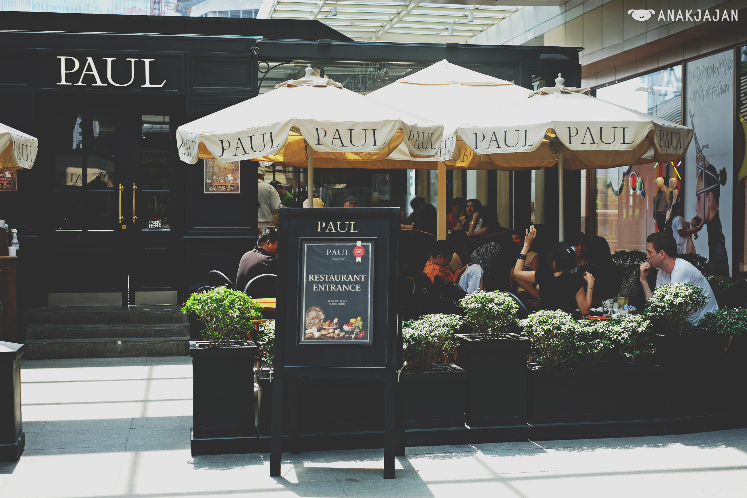 Paul offer french style sweet and savory pastries, brunch menu, salads and etc. AnakJajan had several menu Salade Crevettes Mangue IDR 100k, Tartelette Framboises IDR 55k, Croissant IDR 18k and Cappuccino IDR 45k.
