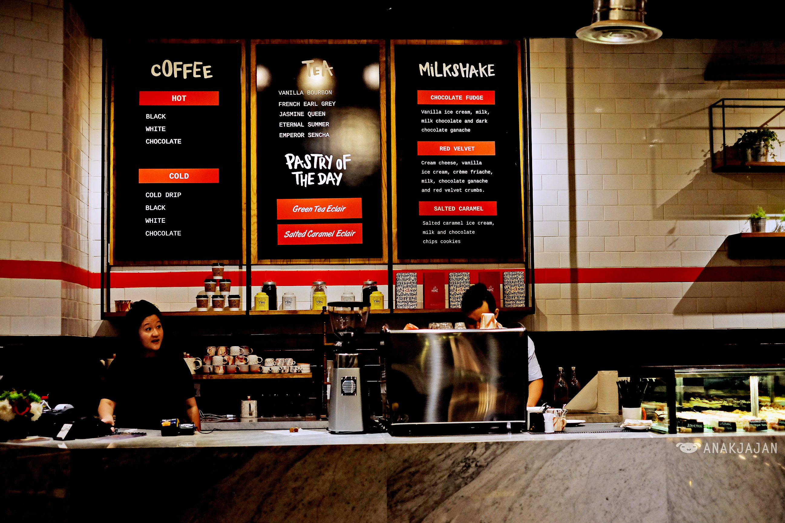 Nomz Kitchen & Pastry served various contemporary food along with dazzling patisserie, the person behind Nomz is non other than Chef Arnold Poernomo, famous celebrity chef from Master Chef Indonesia. I personally love the name from this place, simple yet catchy. Nomz!! It is located at Grand Indonesia East Mall Ground Floor, one floor above Uniqlo. The interior itself is casual and neat with brick walls, red, blue and wooden furniture.
