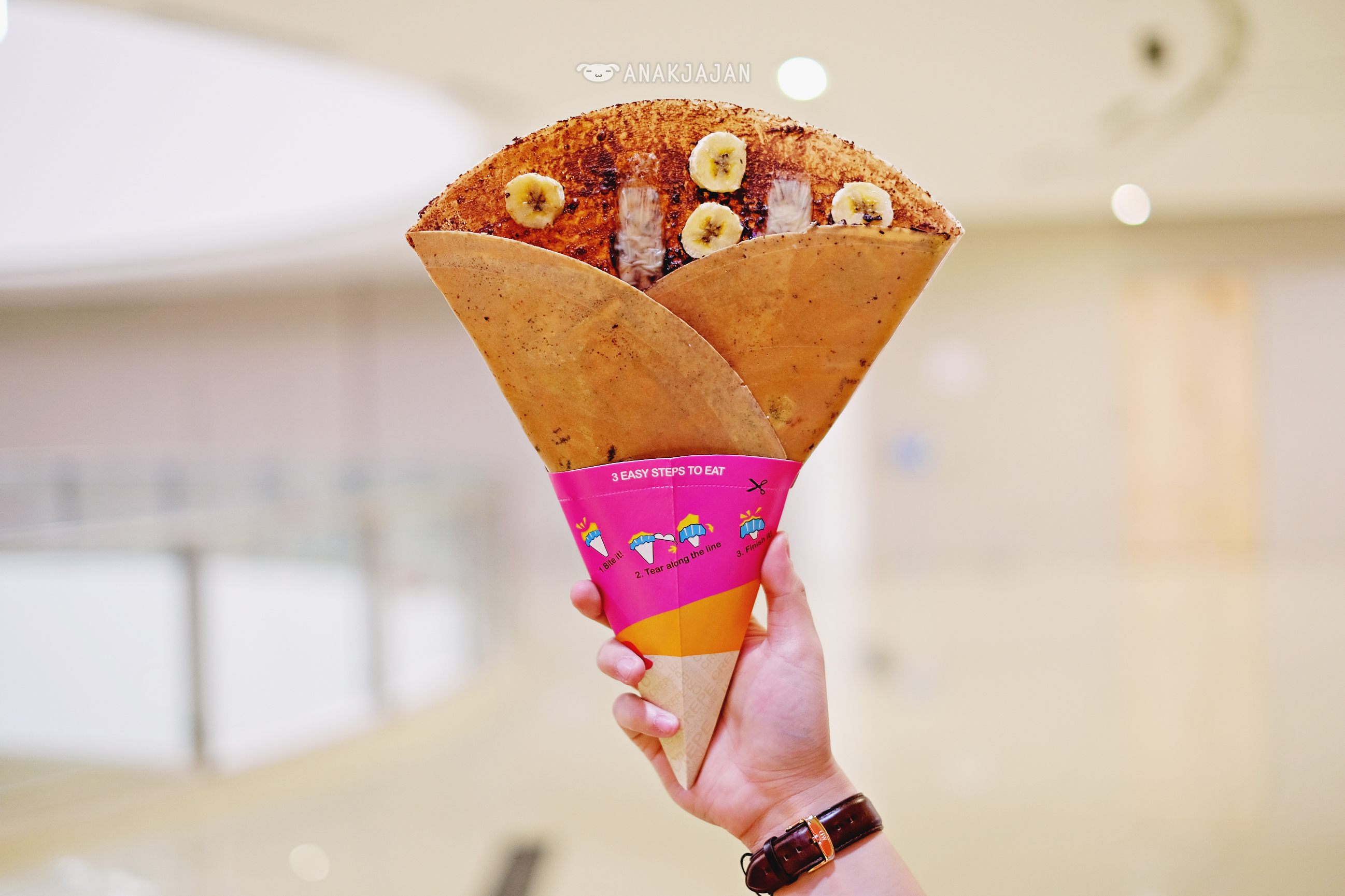 The crepes here are very eye catching and interesting with it’s HUGE gigantic size as you can see on the pictures below. Freshly made by order, they are very very crispy and available in various toppings starting from sweet till savory toppings, you can also order Ice Cream Crepe with crunchy crepe as the cone. AnakJajan personally enjoyed the crepes a lot especially the sweet and savory Chocolate Cheese Banana, the crepe was very crunchy and has a very nice yet addicting fragrant.