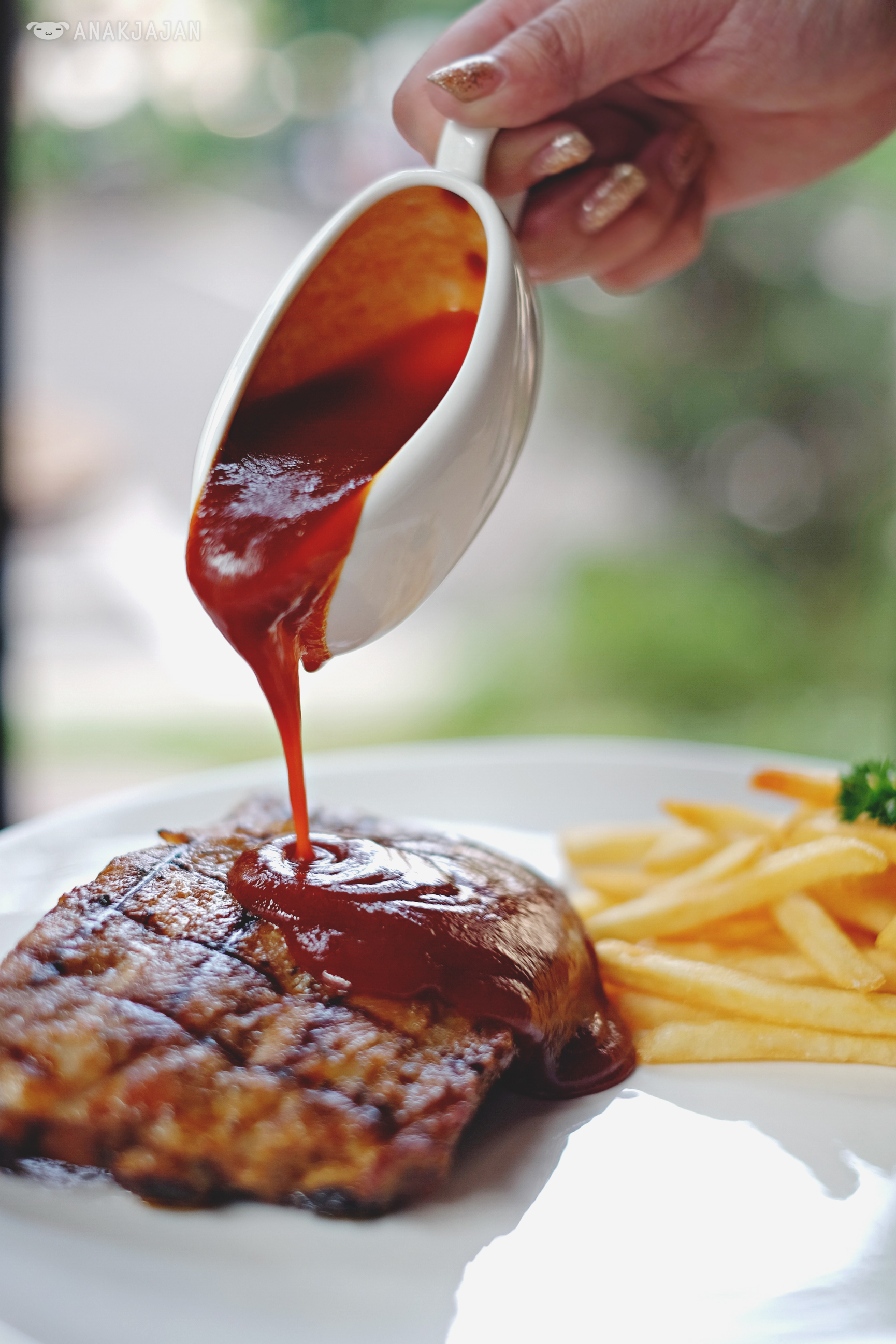 Knowing that Pork Ribs is their top recommended menu, AnakJajan cannot resist not having it. The USA grilled pork ribs served with coleslaw and selection of potato (mashed or fries) and homemade sauce (BBQ, Black Pepper, Mushroom, Gravy), AnakJajan opted for fries and BBQ sauce. Ribs was nicely grilled, seasoned and very juicy succulent, while the homemade BBQ sauce was luscious with a nice tangy kick. So good!