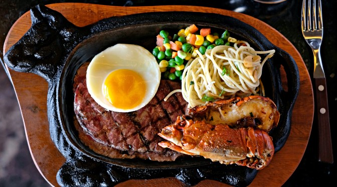 There are several options for steak, Tenderloin Steak 100/ 200gr, Tenderloin Steak 100/ 200gr + Grilled Lobster, Grilled Lamb Shoulder 100/ 200gr, Grilled Lamb Shoulder 100/ 200gr + Grilled Lobster, Wagyu Tenderloin Steak 200gr, Wagyu Tenderloin Steak 200gr + Grilled Lobster, Minced Beef Steak 100gr, Minced Beef Steak 100gr + Grilled Lobster, Dory Fish Steak, Dory Fish Steak + Grilled Lobster, Grilled Lobster, Chicken Fillet Steak and Chicken Fillet Steak + Grilled Lobster, other than that Steak Inn also serves 4 options of spaghetti.