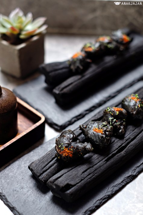 Don’t get fooled by the strange black looking dish because it tastes sooo good!! It’s actually karaage or deep fried chicken thigh with black squid ink batter, that explains the black color and it’s not any ordinary chicken karaage because once you bite it, creamy spicy mayo sauce hidden inside will explode in your mouth.