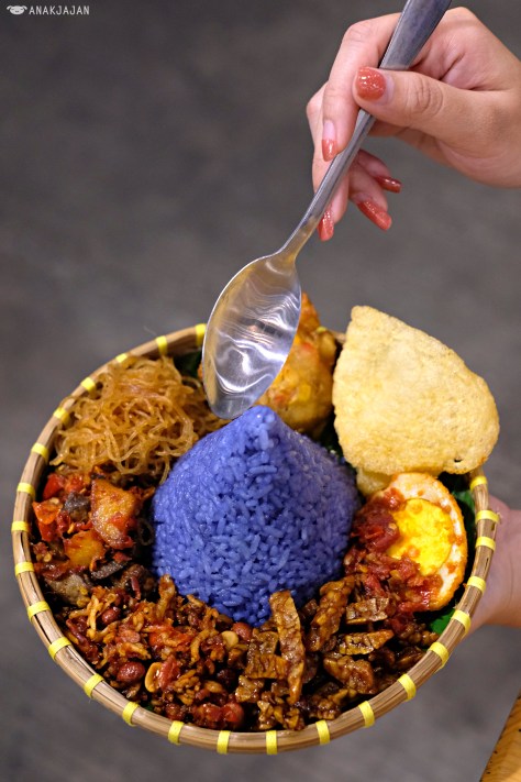 Now this is the star, looking soooo pretty and inviting with the colorful rice and ingredients. The rice is actually uduk fragrant rice with subtle coconut milk taste served with 7 side dishes with all different texture and flavor resulting a colorful yet harmonious taste. Love it!