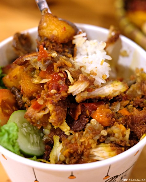 To our surprise, this one is so sooo good we couldn’t stop after the first spoonful. Deep fried turmeric chicken with spicy kentang ati balado. All the chicken and spicy sambal rice bowl is nicely executed with strong bold yet addictive flavor.