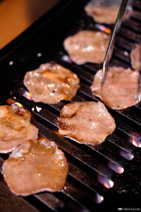 First impression, plating on point! Love how festive the way they put all the ingredients together in appetizing way. First the thinly sliced Gyutan or tongue, it was grilled to perfection, very tender with amazing texture.