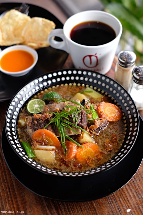 Since we’re quite hungry, we opted for something more filling for lunch, and to our surprise their Sop Iga or ribs soup was nicely done. Soup was full of umami, comforting and tasteful with nice kick of spices aroma, then the ribs were meaty tender and fall of the bone easily. It’s served with a bowl of rice and crackers, squeeze a bit of lime juice in the soup for zesty fresh kick.