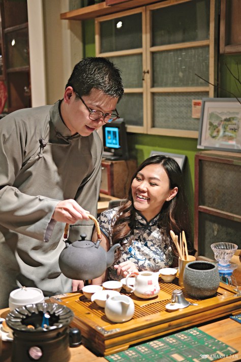 Located in Di Hua Sreet, there’s a quite and cozy tea house hidden in the busy shopping street. For complete experience, we got the “art of tea” session where we can see tea brewing process and then enjoy it with traditional delicacies. To make the experience more memorable, you can borrow Qipao or traditional Chinese outfit while enjoying the tea.