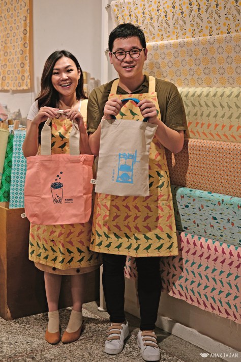 Just a few minutes of walking distance from our tea cafe, we joined DIY bag printing class and made ourselves cute looking bag. I got the bubble milk tea design while Mr. Jajan chose shaved ice design.